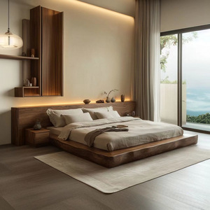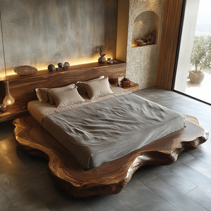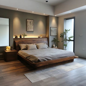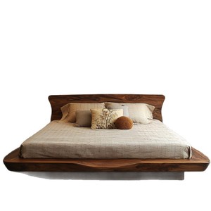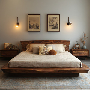 わびさび風総無垢材ブラックウォールナットオーク原木モダンシンプルタイプ寝室B&Bダブルベッド