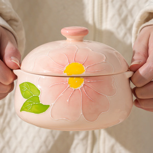 モーニングストーリー手描き和食器家庭用高温セラミックボウルとプレートクリエイティブ手描きレリーフ高温下絵付け色