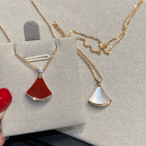 V ゴールドハイバージョンセイコー扇形スカートネックレス 18K ローズゴールドホワイトマザーオブパールカーネリアンライト高級ファッション鎖骨チェーン