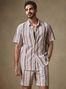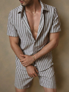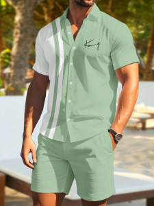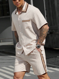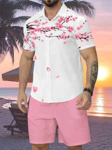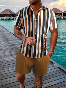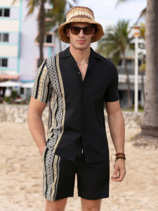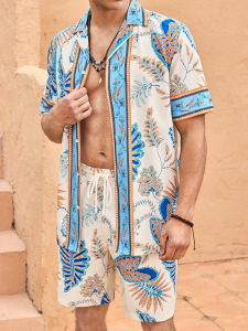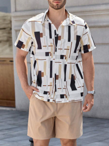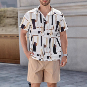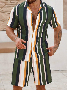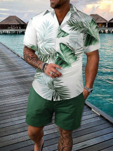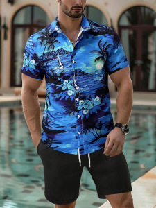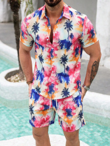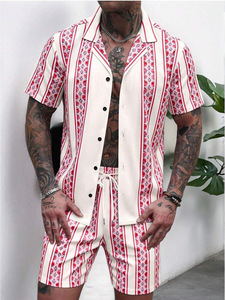 2025夏に国境を越えたアマゾン欧米の男性服のカジュアルなシャツの半袖パンツ