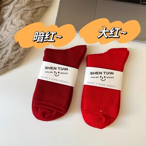 アンコラレッド、ワインレッド、レッドソックス、レディースミッドカーフソックス、メンズ蛇年結婚式ダークレッドソックス、コットンソックス