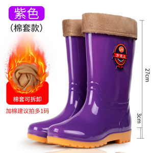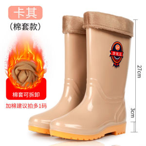 ハイチューブレインブーツ、レインブーツ、防水靴、ベルベットラバーシューズ、オーバーシューズ、ウォーターブーツ、レディースミッドチューブ、暖かい、滑り止め、韓国風冬ショートチューブ