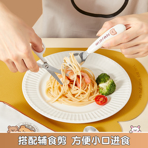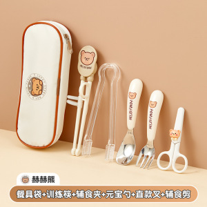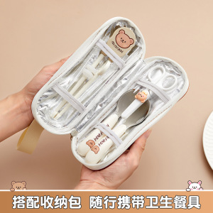 【ヘヘベア】カトラリーバッグ+ストレートスプーン+ストレートヌードルフォーク+練習用箸+ハサミ+透明クリップ