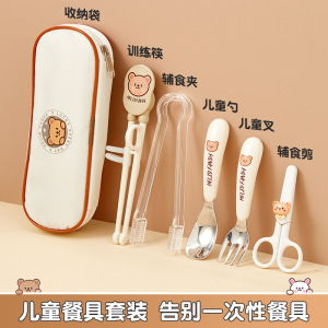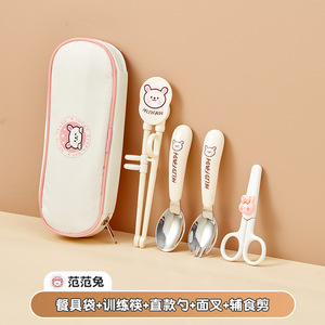 子供用 316 ステンレス鋼の栄養補助食品フォーク、スプーン、トレーニング箸、赤ちゃんが食べることを学ぶ、外出用のポータブル食器セット