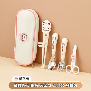 【ヘヘベア】カトラリーバッグ+ストレートスプーン+ストレートヌードルフォーク+練習用箸+ハサミ