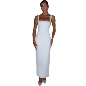 国境を越えた2025夏の新型女装フランス高級感気質優雅真珠ストラップ露背修身ワンピース
