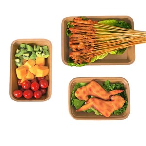 クラフト紙トレイ使い捨てディナープレートクラフト紙バーベキュープレート紙プレート串焼きスナック長方形食品パッキングボックス