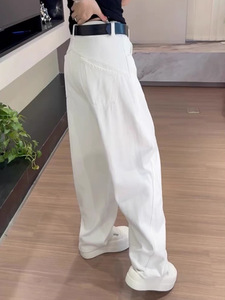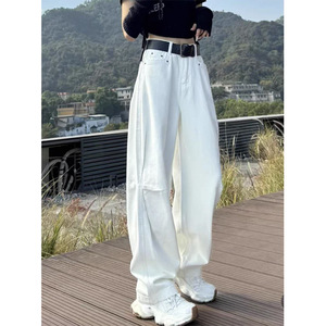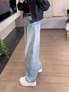 大码复古弯刀牛仔裤女春秋胖mm梨形身材宽松高腰显瘦直筒阔腿裤子