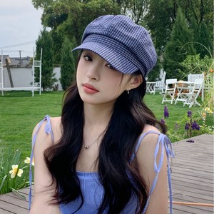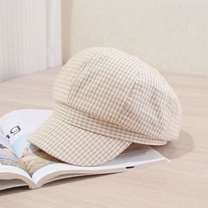 2025新款八角帽子女春夏街头百搭显脸小报童帽甜美文艺格子贝雷帽