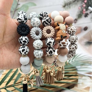 Amazon ベストセラー デイジー ヒョウ柄 シリコーン ビーズ ビーズ タッセル キーホルダー ヤク シリコーン ブレスレット レディース ブレスレット