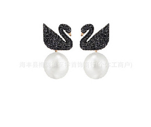 ダイヤモンド付きの新しいブラックスワン イヤリング