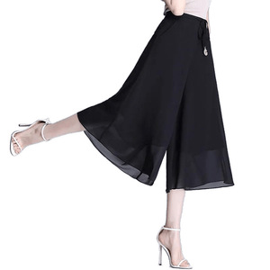 シフォン痩身スカートパンツ薄い夏七分ワイドレッグパンツ大きいサイズ弾性ハイウエストルーズカジュアルパンツ女性のスカート