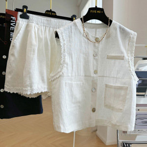 一流ブランドのソルト系ライトで大人なピュアリネンベストショーツファッションスーツライトラグジュアリー夏スタイル人気の2点セット