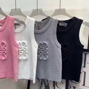 夏のアルファベットの上着のニットの氷の糸のプリントの袖なしのベストのファッションの百合の新型の修身の丸首のギャル