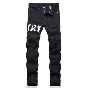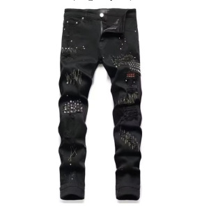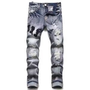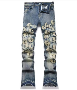 トレンドカジュアルパッチ修身小足ファッションブランドの個性的なズボンのファッションの新型の穴を開けて布の刺繍のジーパンの男性を貼ります。