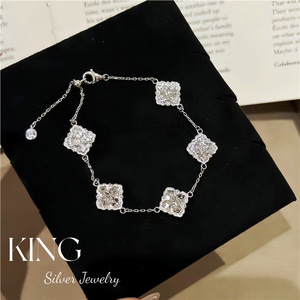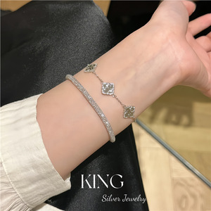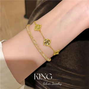 858 ファイアフライ四つ葉 | S925 シルバー ゴールドメッキ レディース クラッシュアイス アイス クローバー ファッション 通勤 オールマッチ ブレスレット
