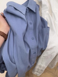 100%雾霾蓝色纯棉长袖衬衫女上衣衬衣防晒外套今年流行漂亮小衫