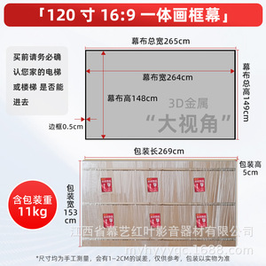 組み立てなし一体画枠幕布100インチ16:9狭辺壁投影幕プロジェクター幕客間家庭用