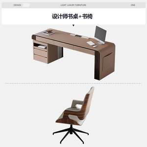 马鞍皮书桌【长柜体】(宽度70)+办公椅*1