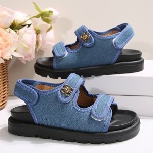 夏の大きいサイズのデニムのマジックテープの厚い底のサンダル2025新型の越境欧米のローマのサンダルの女性