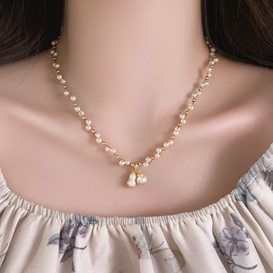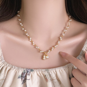 ライトラグジュアリーニッチピーナッツパール誇張ネックレスフルダイヤモンドペンダントネックレスレディースハイエンド鎖骨チェーンネックアクセサリー
