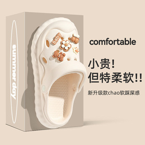 白い穴の靴の女性のタイプの夏の外は2025新型の砂浜の屋外の滑り止めの半包頭の厚い底のサンダルの女性を着ます。