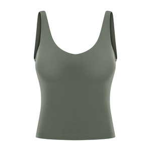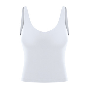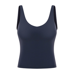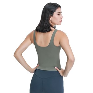 LULU同風Alignシリーズレディーススポーツベストウエスト丈春夏Vネックロングヌードヨガベスト