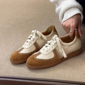 牛革版 ~ アメリカの復古風徳訓靴の女性の新型の丸い頭は色の柔らかい底のレジャーの運動靴を合わせます。
