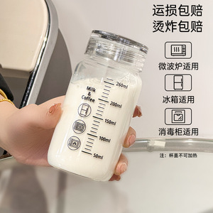 電子レンジ専用耐熱ガラスカップ 女性用携帯カップ ins風豆乳ミルクカップ