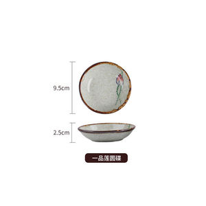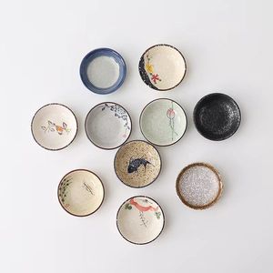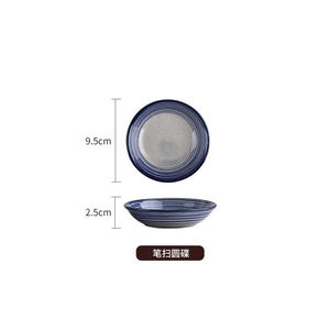 茶点盘釉下彩陶瓷调味碟小吃小菜圆形碟日式碟子复古手绘家用餐厅