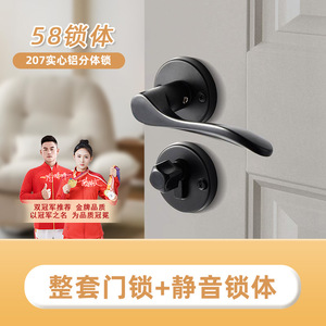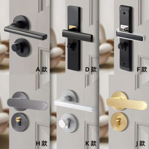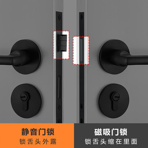 ドアロック室内木製ドア家庭用ドアロック寝室黒色ドアハンドル静音分離ロック汎用型マグネットロック