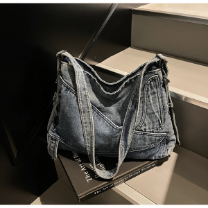 跨境牛仔托特包大容量女士百搭单肩包时尚潮流手提包学生补课包包