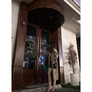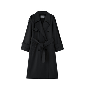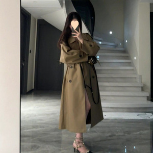 巴黎旧梦经典卡其色廓形大翻领显瘦双排扣中长款气质风衣外套女
