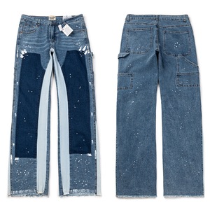 高品質のヨーロッパとアメリカの新しいギャラリーウォッシュドマイクロフレアブラックブルースプライシングジーンズ男性と女性のズボンとショートパンツ