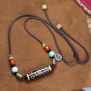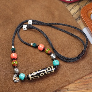チベット伝九眼天珠ペンダント夏男女鎖骨チェーン文遊び編みひもネックレス松石ラクダ骨部品