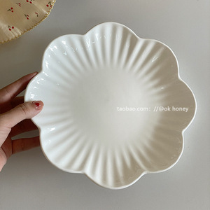 インホワイトセラミックユリの花型プレート家庭用電子レンジ料理デザートフルーツサラダプレートケーキ朝食プレート