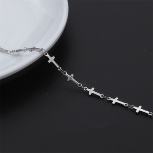 不锈钢保色不掉色钛钢延长链方珍珠十字链条手工diy手链项链材料