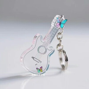 新しい 2D アクリルクリエイティブ楽器ギターシンプルガールハートインバイオリンキーホルダーペンダント