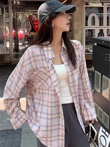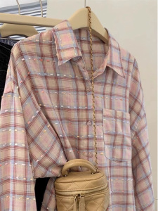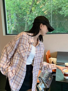 粉格織帯日焼け止めシャツコート女性春夏新デザイン感韓系ゆるい減齢カジュアル長袖シャツ