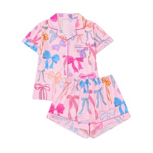 国境を越えた対外貿易の新しいパジャマの四季の蝶結びのプリントの襟のゆったりした半袖の半ズボンの女性の部屋の服のスーツ