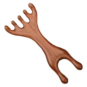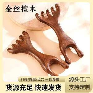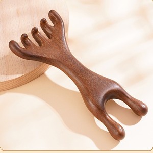 新しいスタイルのアントラーズカエルコーム、ゴールデンシルクサンダルウッドマッサージコーム、経絡五本爪コーム、両用鼻スクレーパー、ロングハンドルヘアセラピー木製コーム