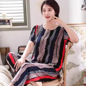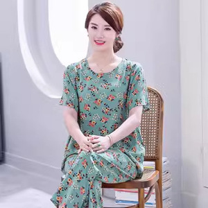 2025 新しい綿シルクパジャマ女性の母親のホーム服中高年人工綿は外で着用できる大きいサイズの夏のスーツ