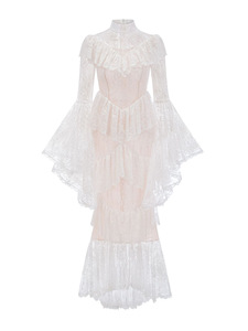 クロスボーダーの大衆気質の優雅なレースの刺繍はラッパの袖の長いワンピースのタキシードの女性の高級感をつなぎ合わせます。
