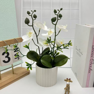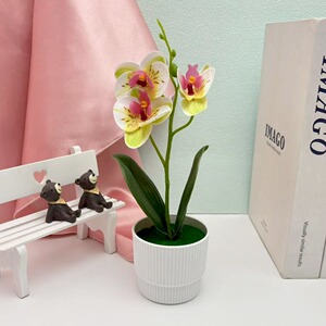 3Dプリント 3輪胡蝶蘭 鉢植え 緑と白 (高さ29*幅12cm)