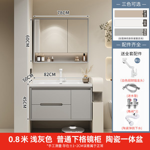 オーク材ドアパネル半密閉普通ミラーキャビネット - ブライトグレー 80CM + 高品質セラミック + 銅コア招き猫蛇口