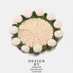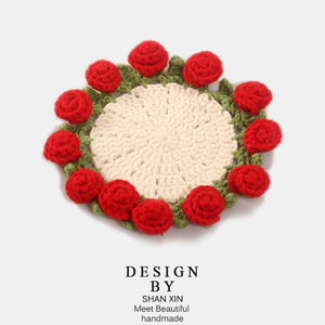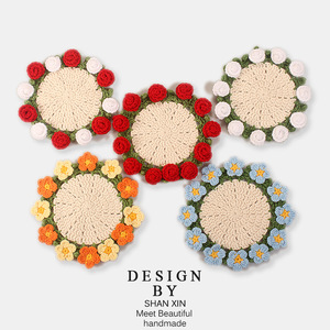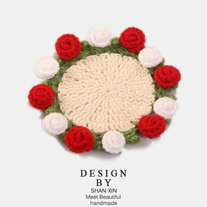 手作りウールかぎ針編みローズブーケコースタークリエイティブ文学デスクトップ装飾断熱マットクロスボーダーアマゾン