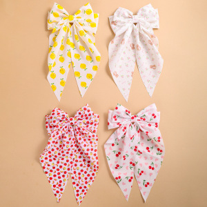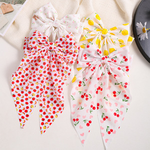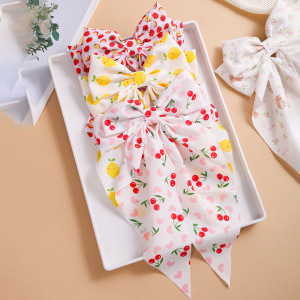 果物のプリントの子供の長いスプリングは女子学生を挟んで清新です。