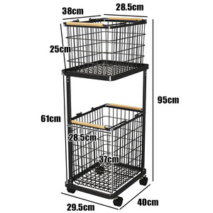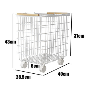 木製ポータブル小バスケット ブラック (ユニバーサルホイール付き)
