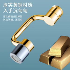 ゴールド【ロボットアーム ダブル吐水口 フルカッパー】1080°回転する