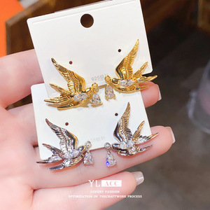 銀針新中国風のライト高級ジルコンウォータードロップツバメイヤリングレトロな個性ニッチ気質ハイエンドイヤリング女性用